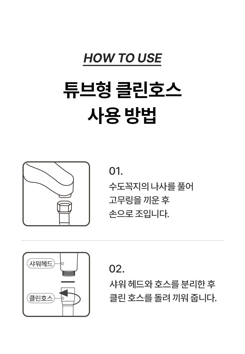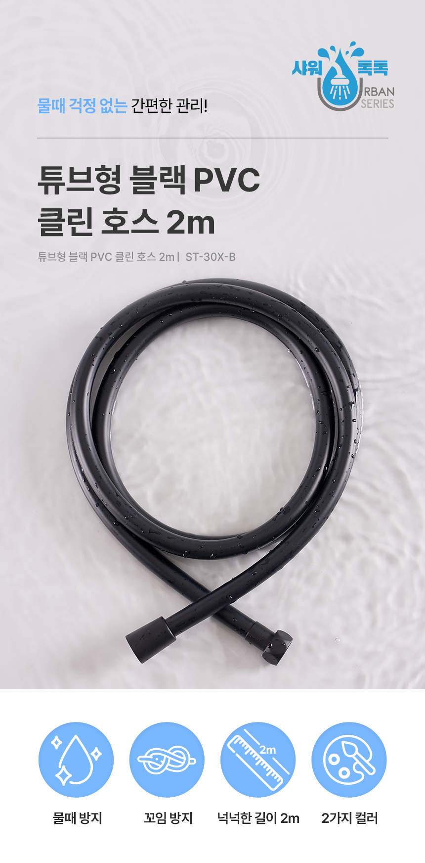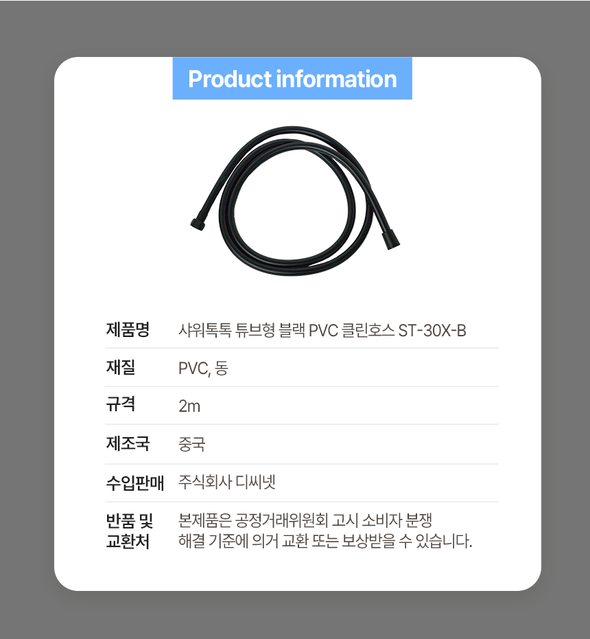샤워톡톡) 튜브형 블랙 PVC 클린호스2m