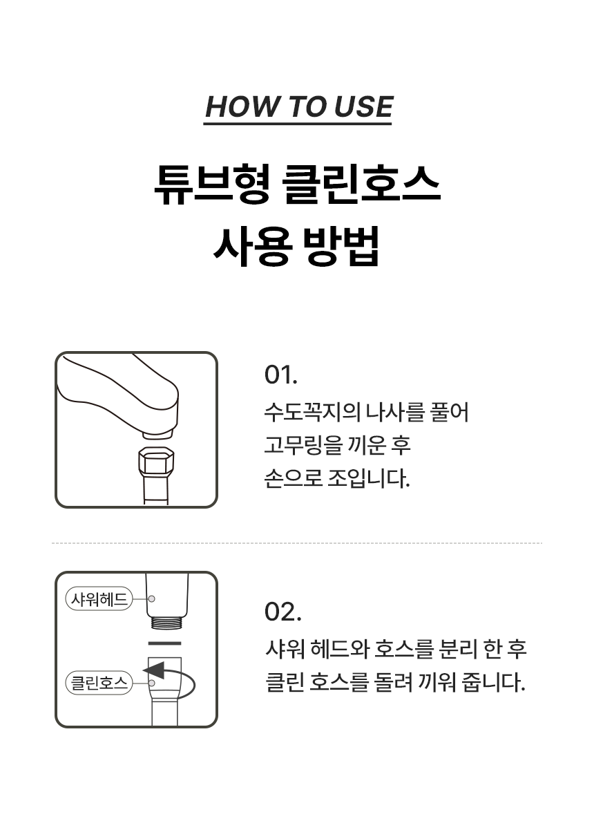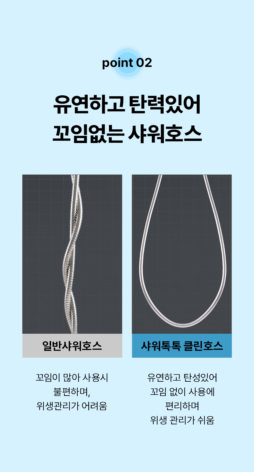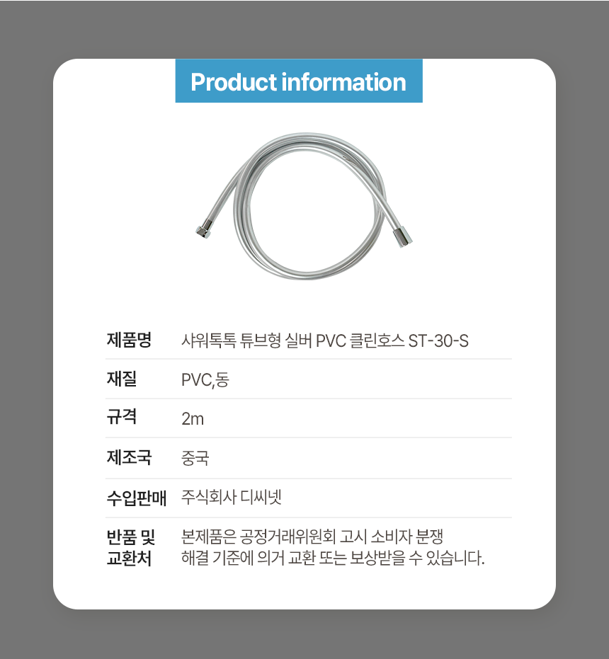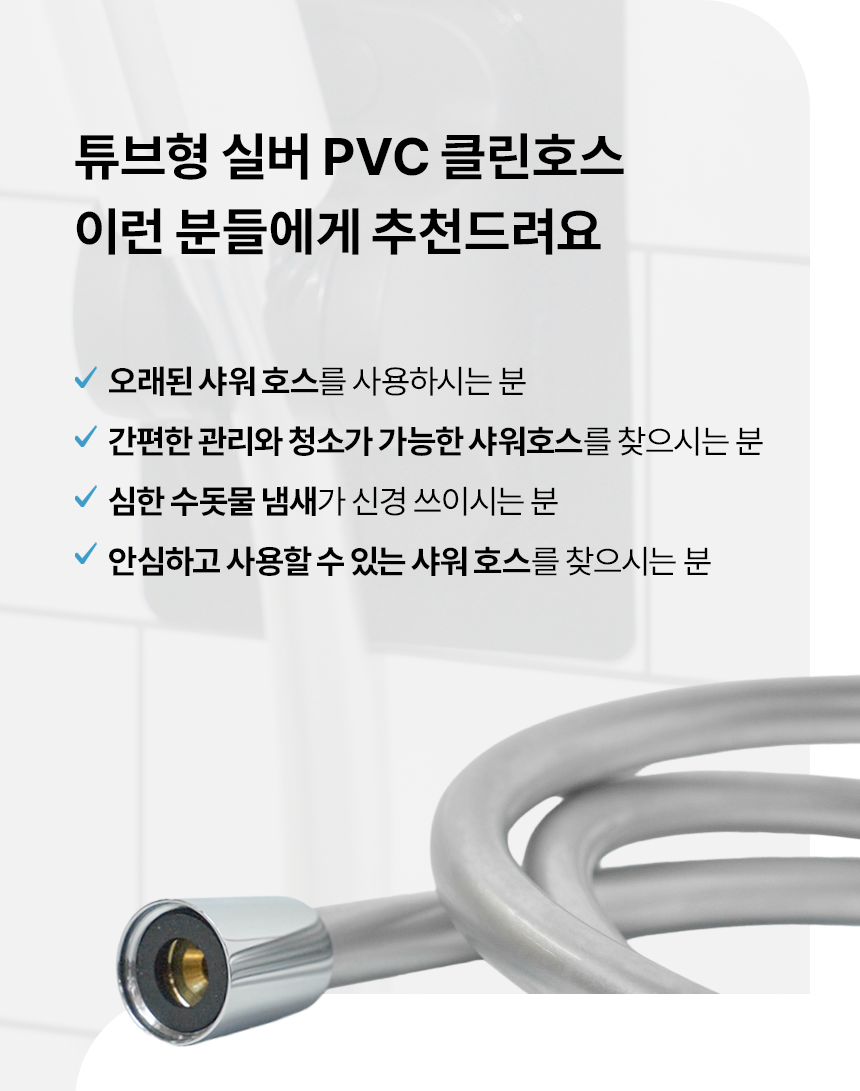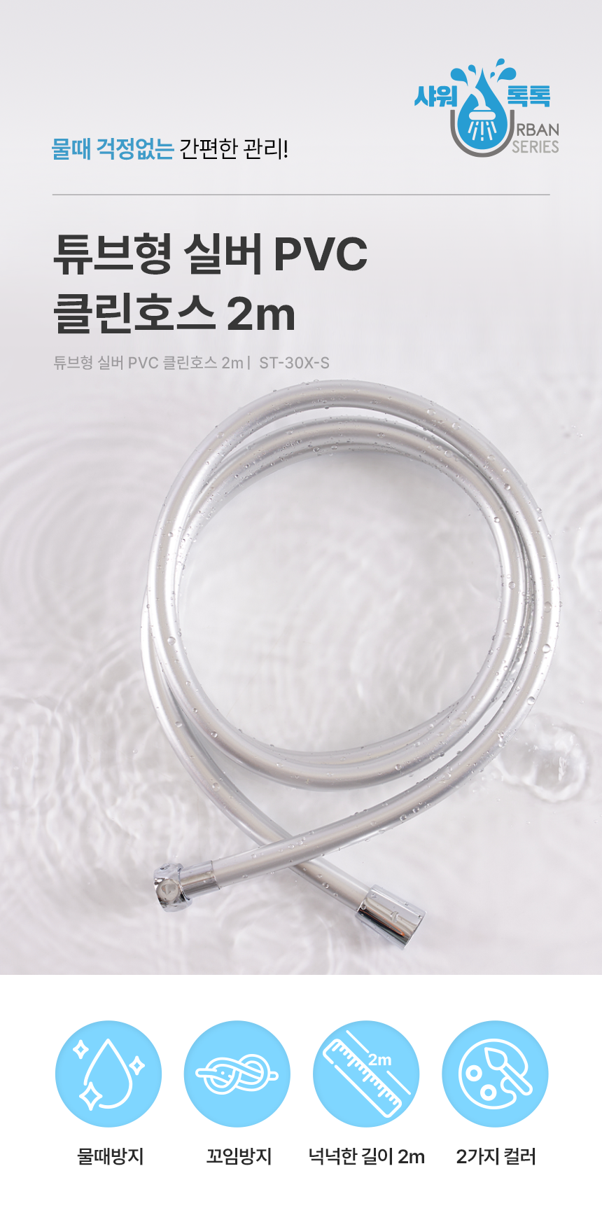 샤워톡톡) 튜브형 실버 PVC 클린호스2m