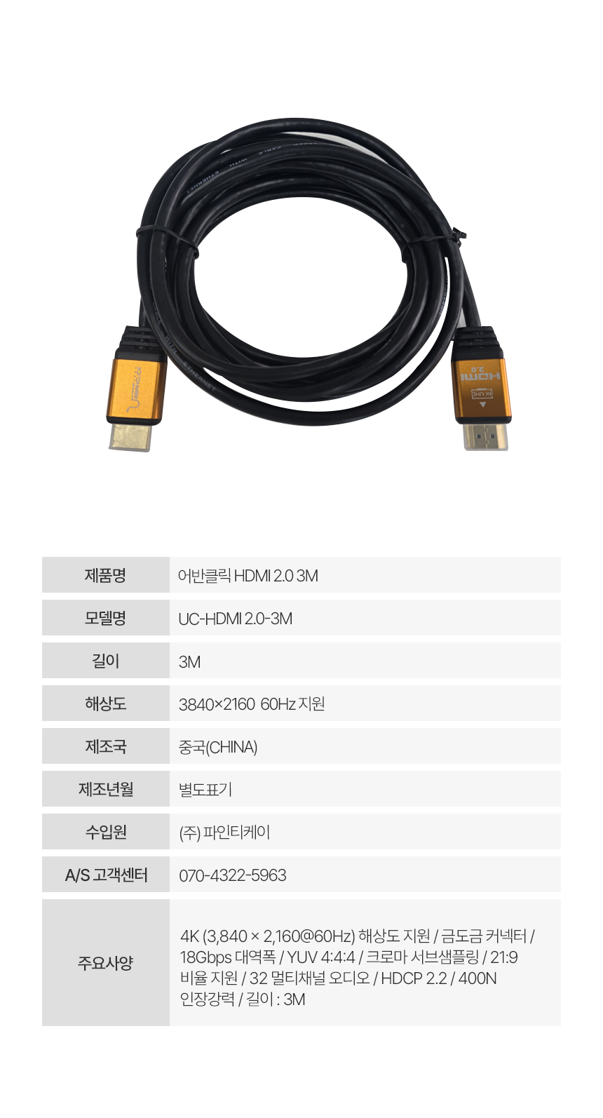 어반클릭 UC-HDMI 2.0 3M 브리스타 포장
