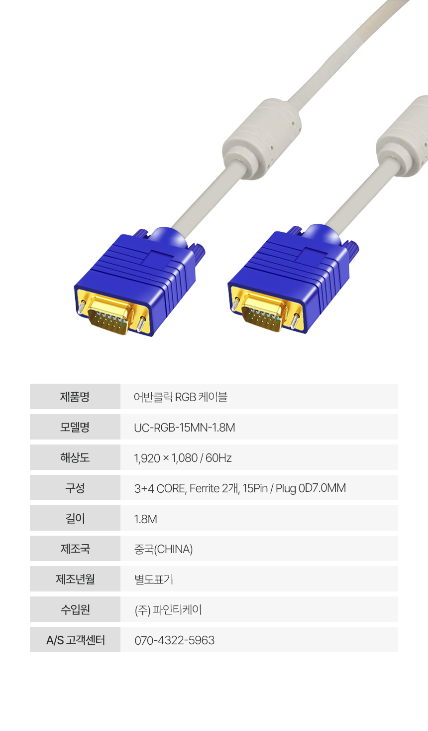 어반클릭 RGB 케이블 UC-RGB-15MN-1.8M