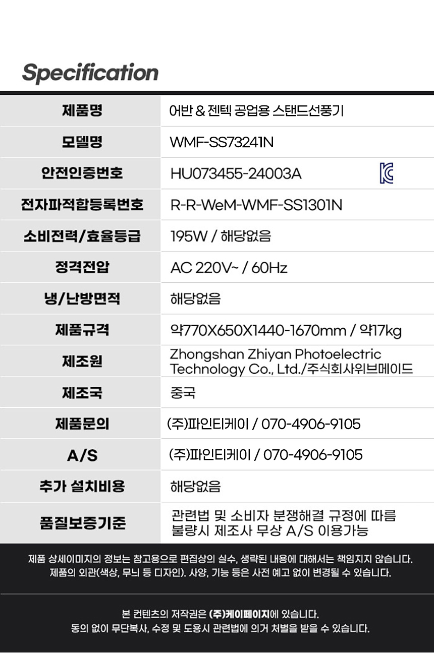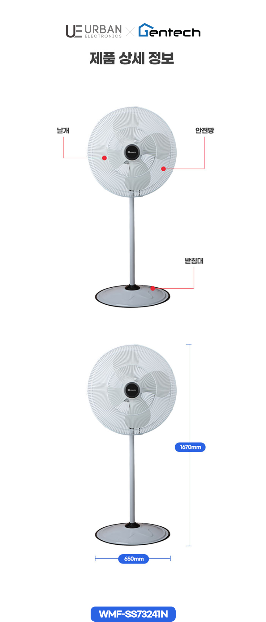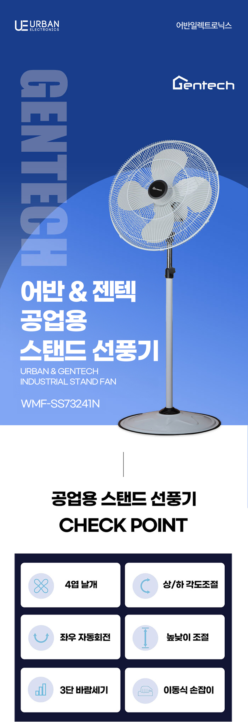 (시화공단)어반&젠텍 스탠드 공업용선풍기 24인치/WMF-SS73241N