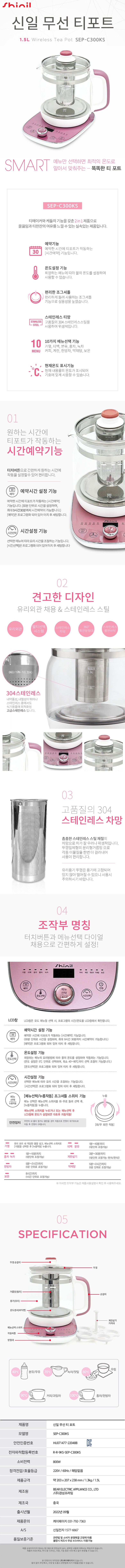 신일 티포트 1.5리터/SEP-C300KS/핑크(6)