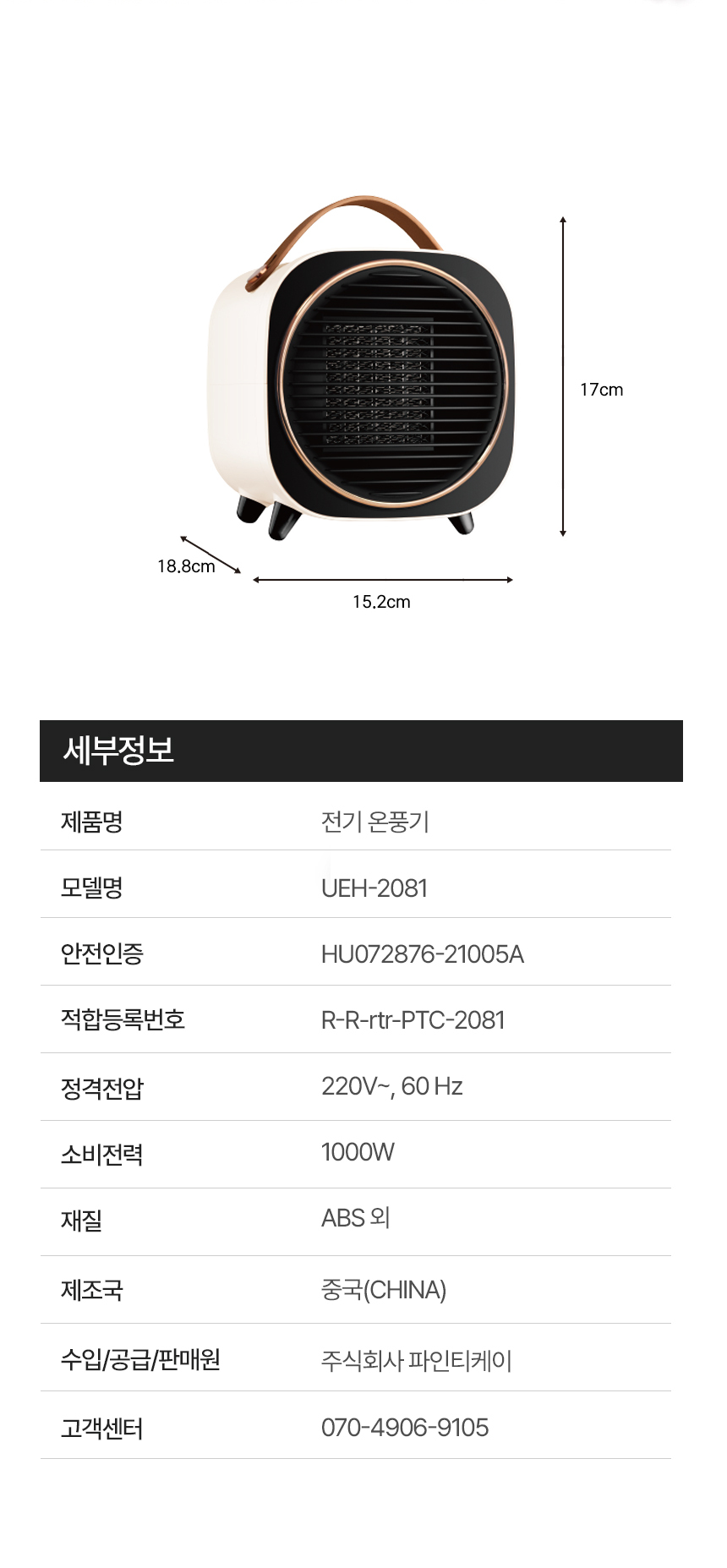 어반 전기미니온풍기/UEH-2081/1000W/화이트(8)