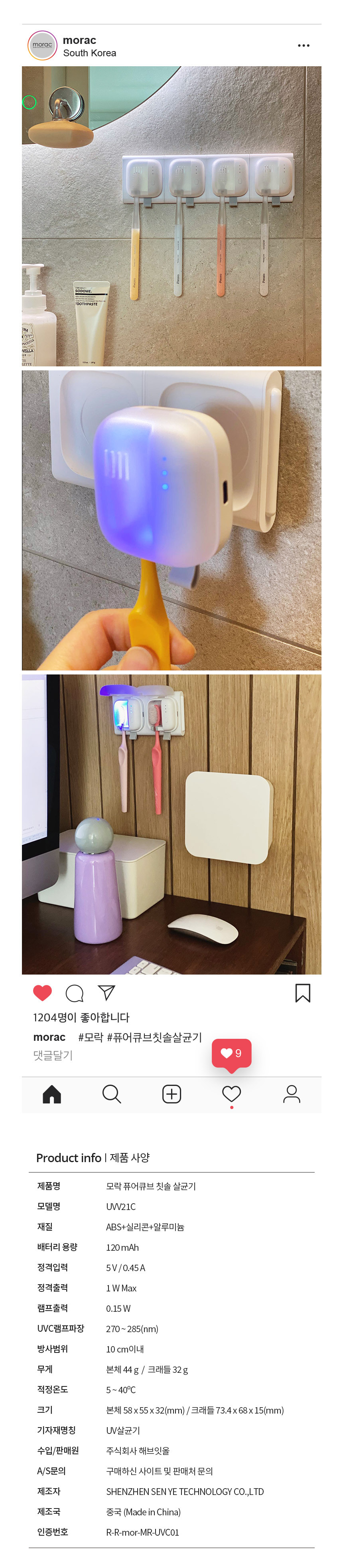 모락 퓨어 큐브 칫솔 살균기
